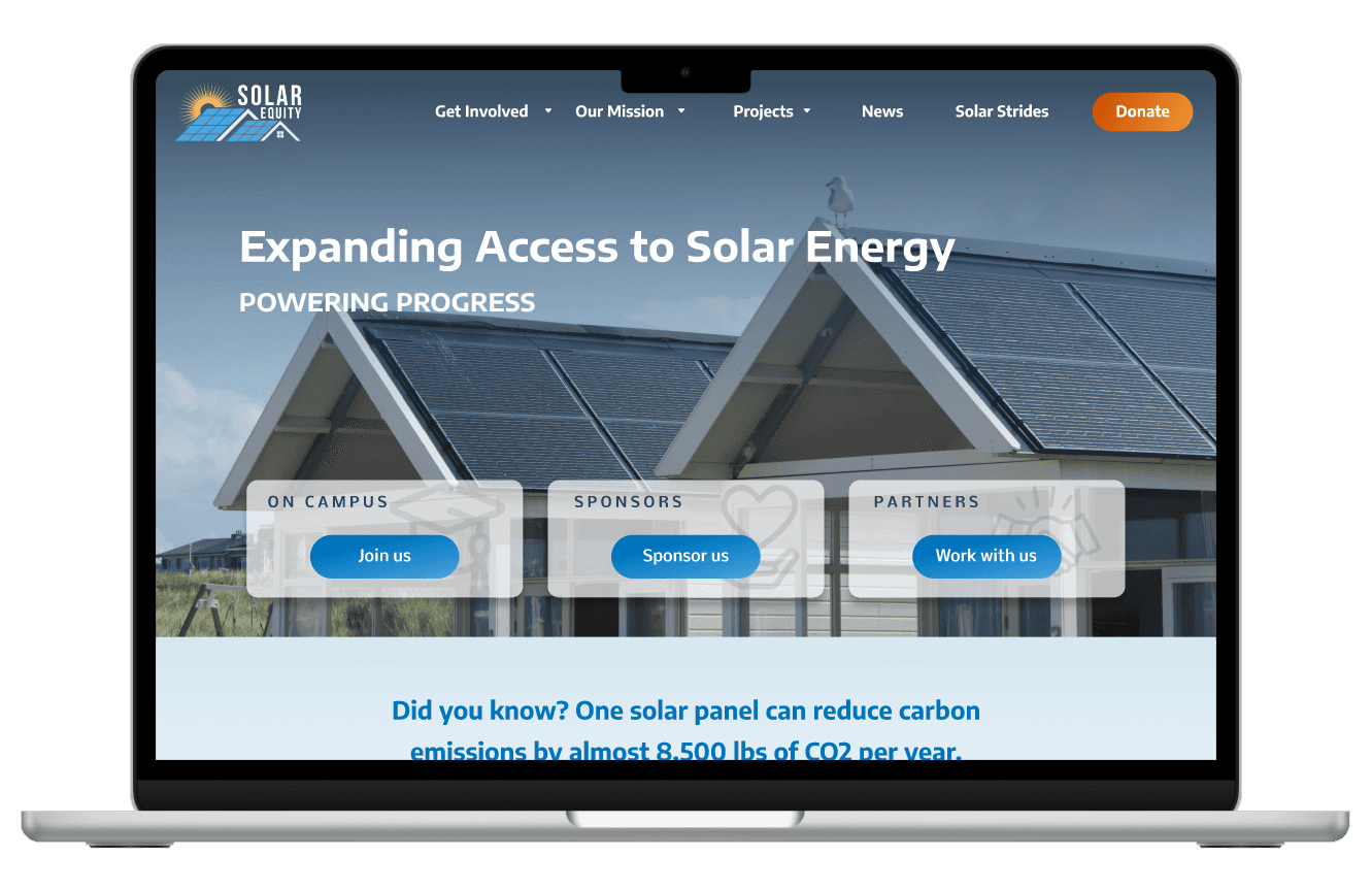 How might we improve Solar Equity’s website to help students, partners, and sponsors complete their key tasks (volunteering, partnership inquiries, and donations) more efficiently, while increasing perceived trust and clarity?