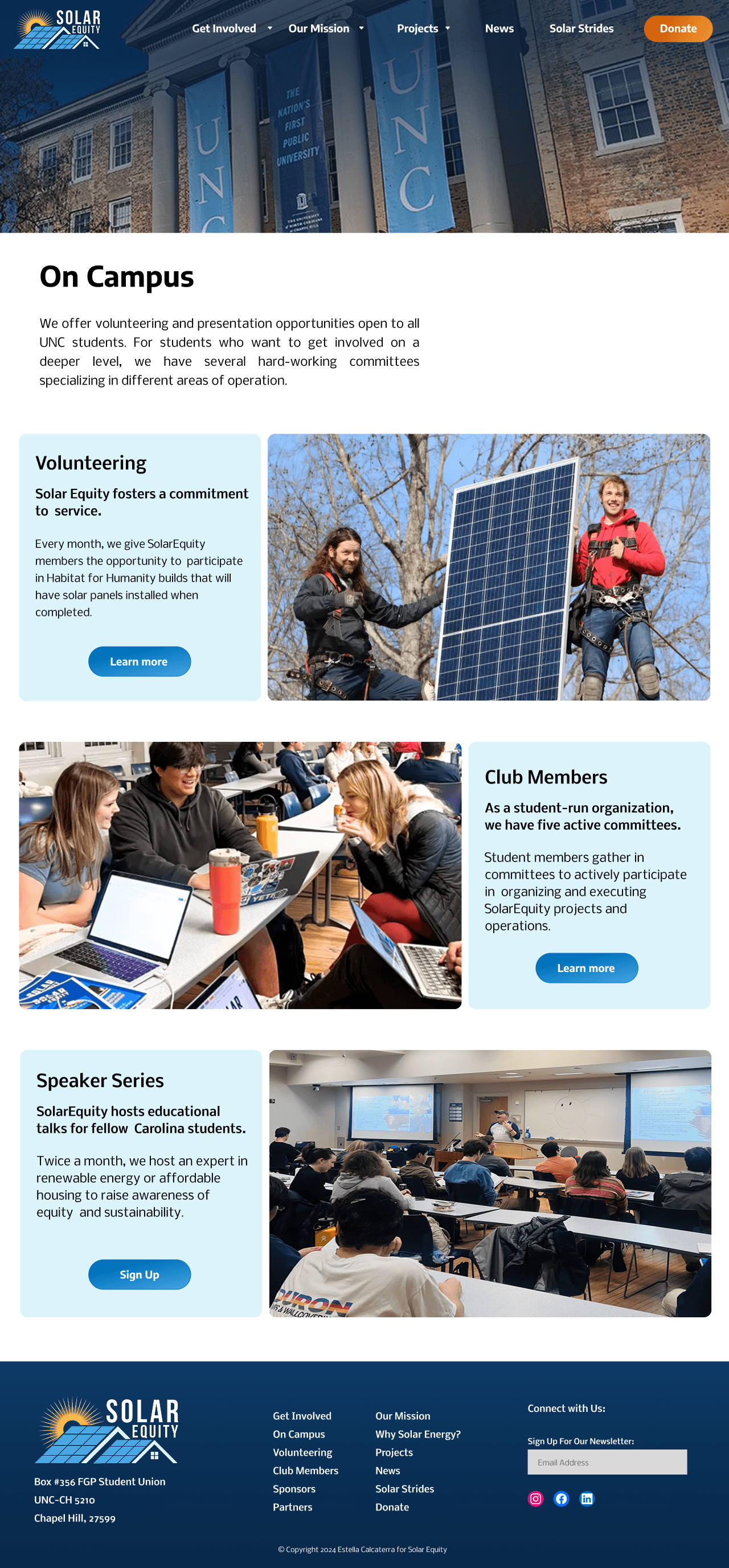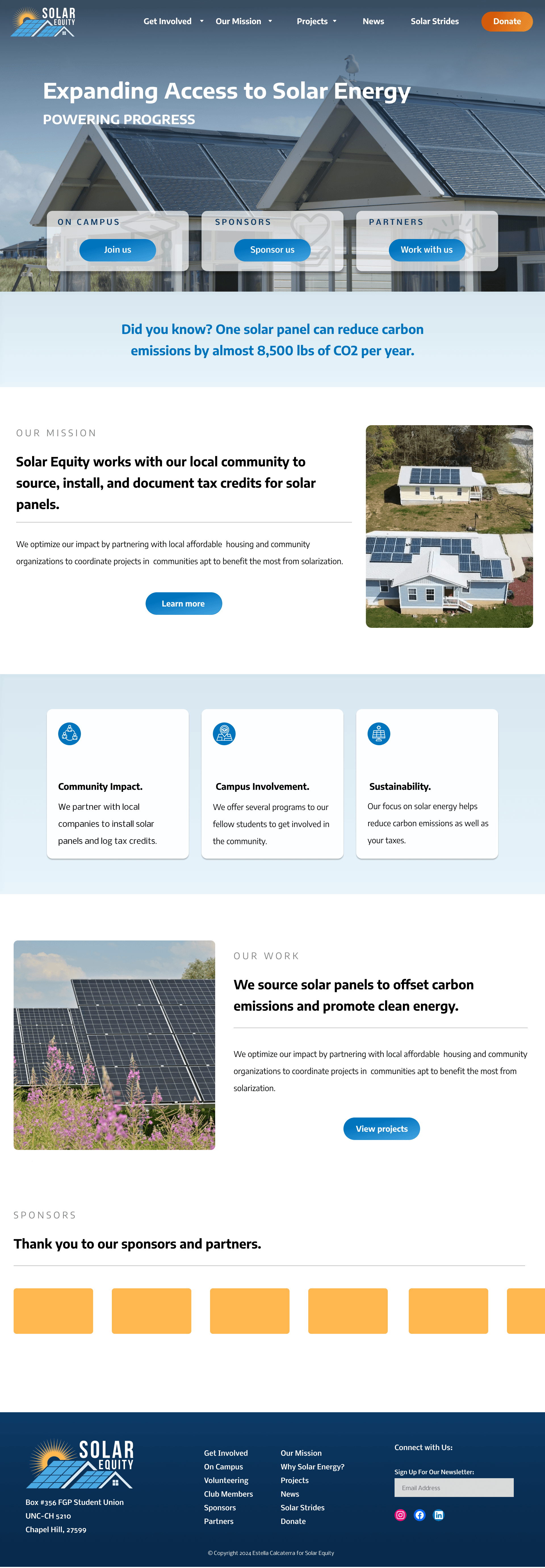 Solar Equity’s old website existed, but it did not help Solar Equity get new clients or members. My redesign aimed to actively funnel users towards getting involved.