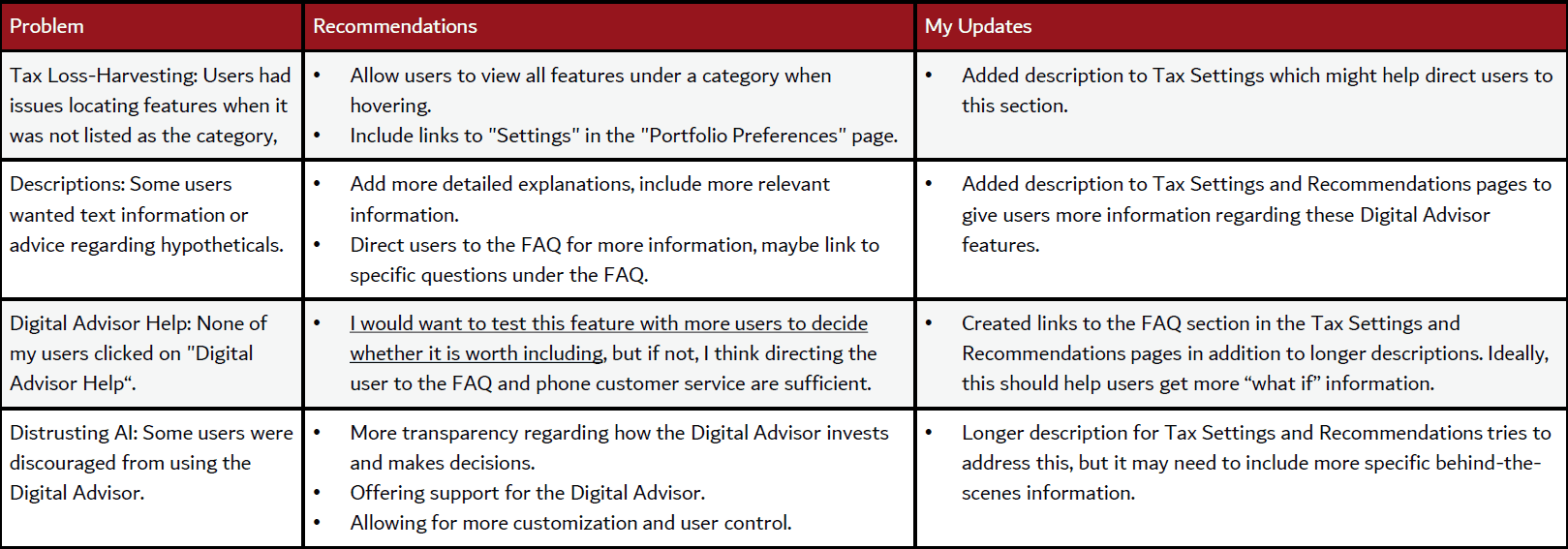 This not only affects customer retention; it also highlights underlying issues with investing mental models and AI trust. Throughout this study, I developed a redesigned dashboard that more closely aligned with new investor expectations and needs.